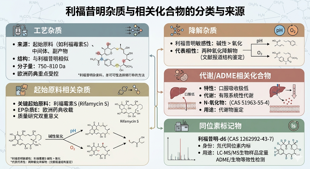 理解利福昔明的杂质来源,有助于研究人员准确选择所需对照品类型: