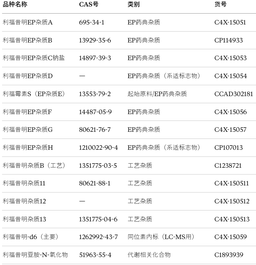 利福昔明杂质对照品全攻略:EP八杂质逐一解析+一致性评价备货清单