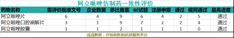 2012-2014年阿立哌唑曾连续三年进入全球畅销药前10位行列,成为新型非典型抗精神病一线用药。2018年、2020年分别入选国家基药目录、国家医保甲类目录。艾昆纬数据显示,2020年中国阿立哌唑销售额约为9796.56万美元,较2019年增长约16.23%。截止目前,3款阿立哌唑的制剂已有企业通过一致性评价,包括片剂:6家、胶囊剂:1家、口崩片:3家。